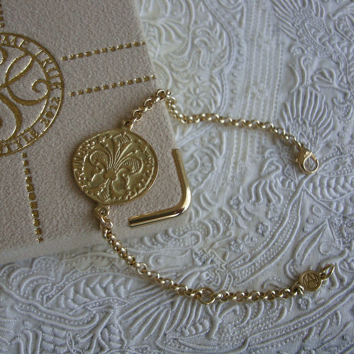 表面には王家の紋章に使われている百合の彫刻がなされている。