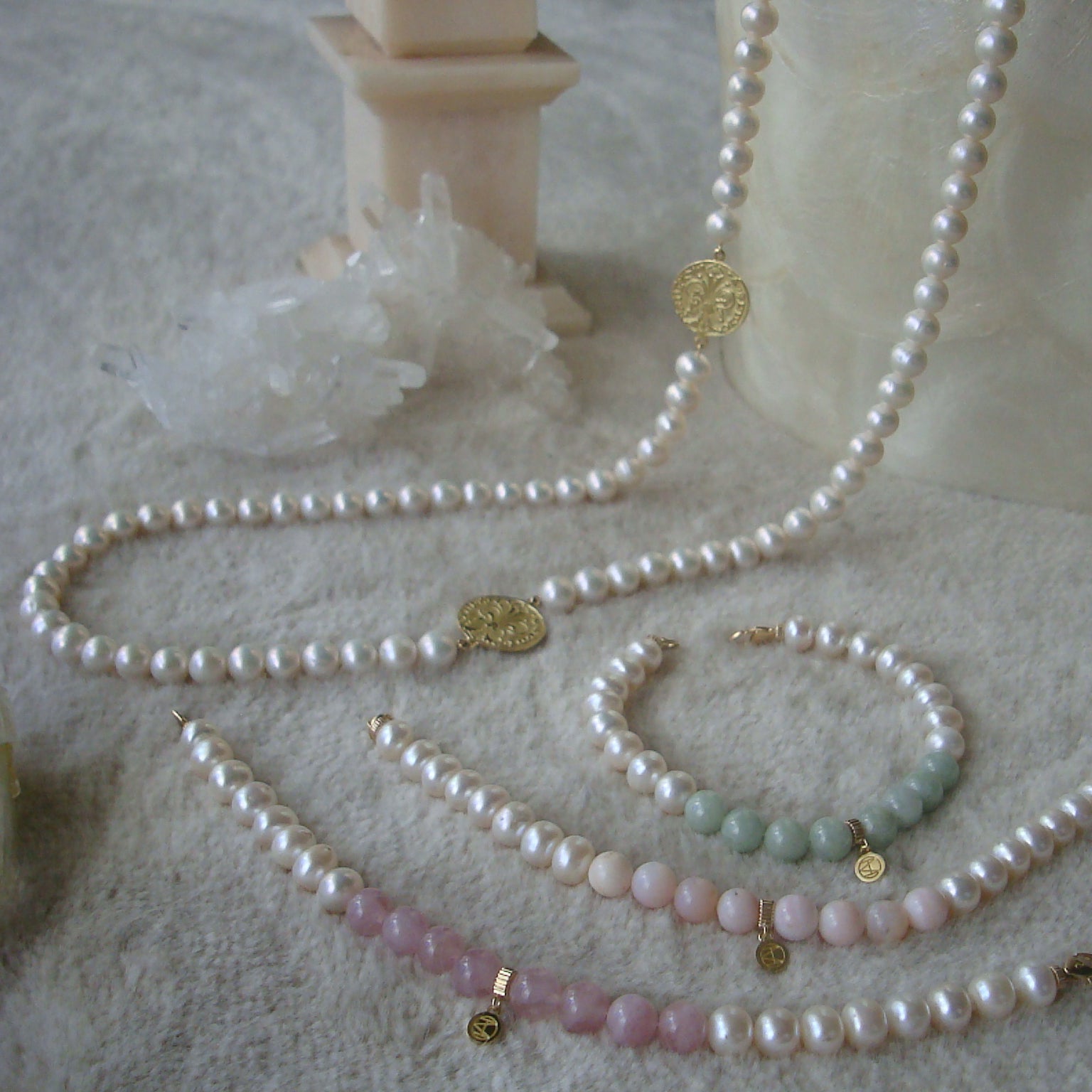 | 使用石 | パール部分:淡水パール 天然石部分:ディープローズクォーツ 硬度:7 産地:マダガスカル |