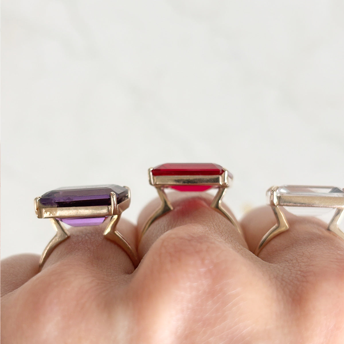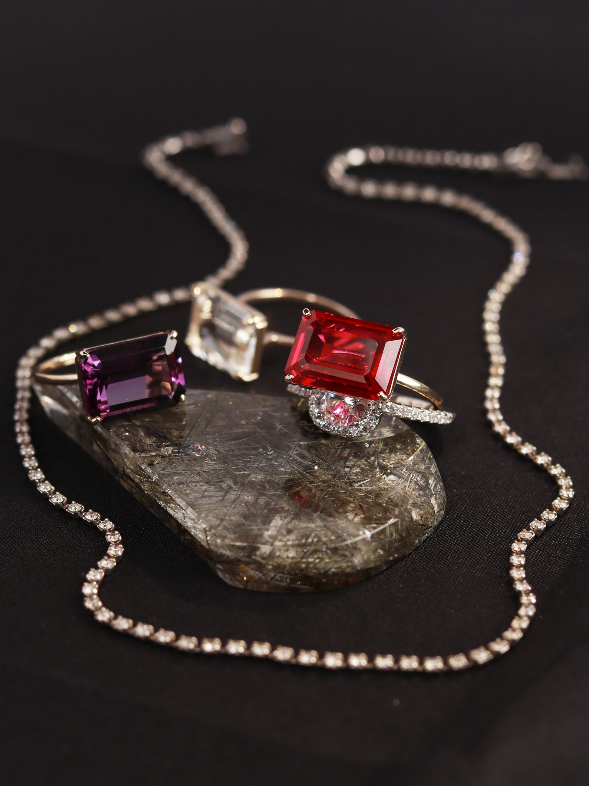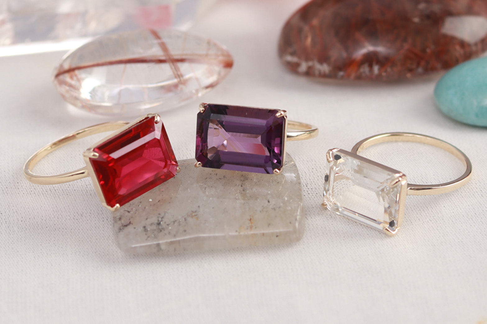 ルビー、ホワイトトパーズ、アメジストの3種。